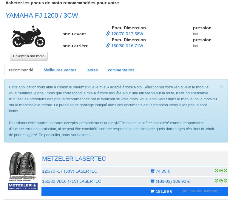 - Metzeler : Lazertec (dimension idem) adapté aux motos anciennes et diagonale aussi !(195,80 TTC)